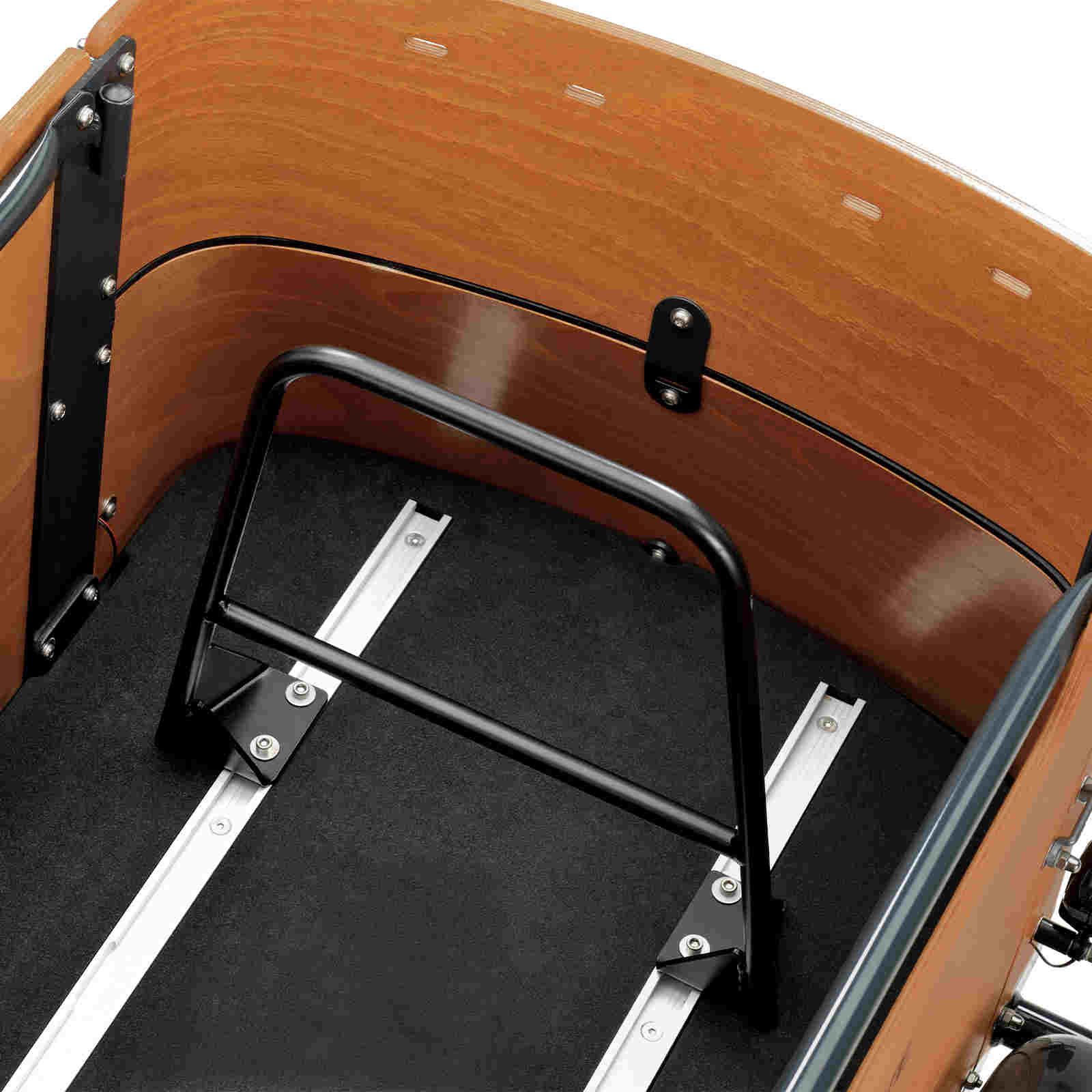 Avec rail pour accessoires permettant un montage facile d'accessoires tels que la barre de séparation pour le coffre du vélo cargo et la deuxième banquette.