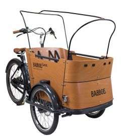 La tente de protection solaire est livrée sans tente piquets. Le montage de la tente de protection solaire sur le vélo cargo Babboe est facile. Le manuel d'installation est inclus.